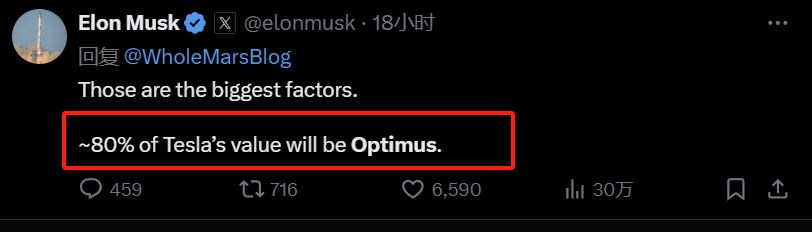 马斯克在社交平台上表示,公司将把自动驾驶和Optimus视为未来最重要的事业,预计未来约80%的公司价值将来自Optimus机器人。